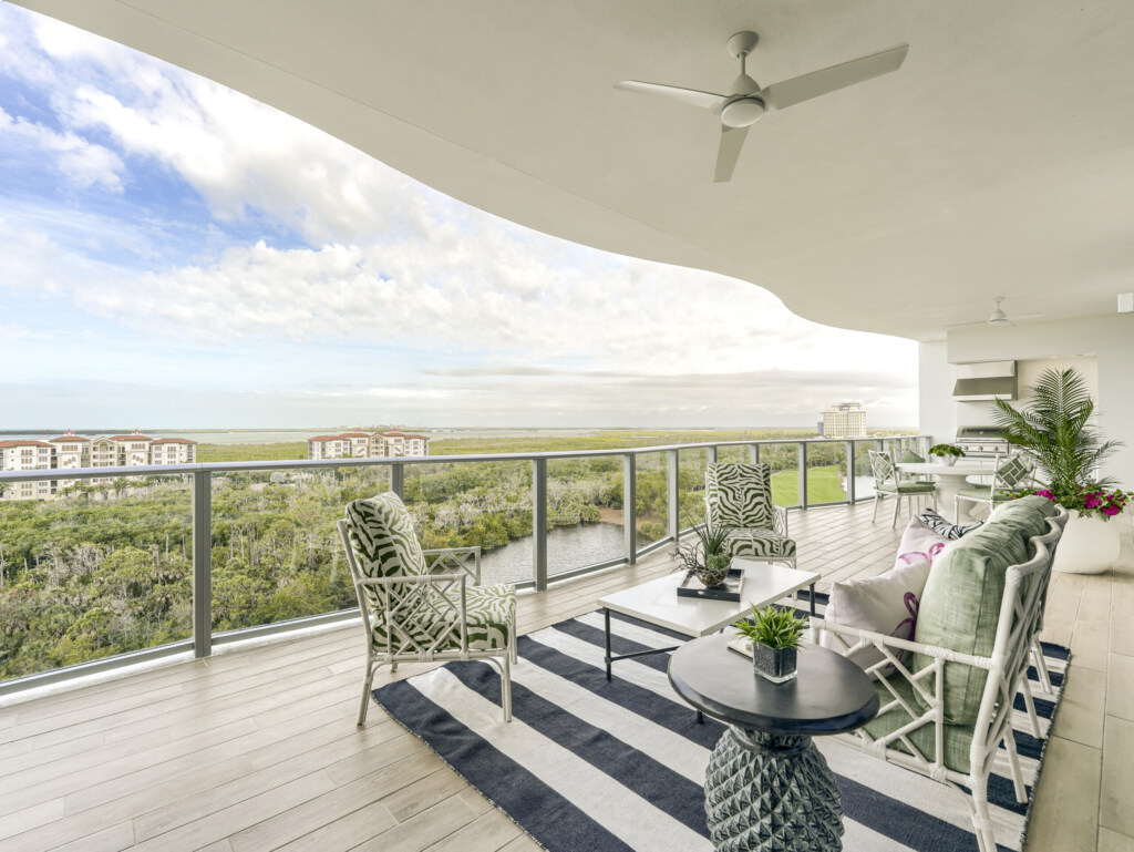 Sight lines are always considered, and reward at every turn. High ceilings, walls of glass, long terraces — where views across the nature preserve to the Gulf change by the minute as puffy clouds swirl by. Of course, residences are served by secure, private elevators and open to a welcoming foyer.